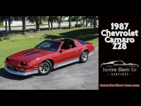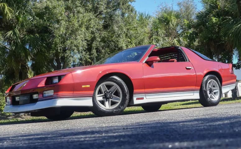 These 3rd Generation Camaros are incredibly popular, and this example looks fantastic in Dark Red paint with a red interior. The t-tops, alloy wheels, Z/28 emblems, and striping just scream 1980s time period!