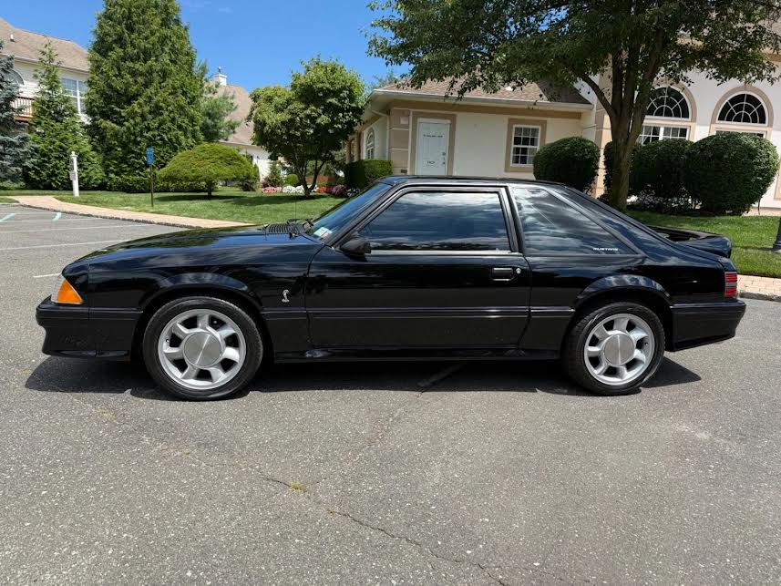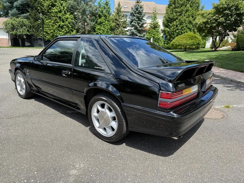 This is Cobra #4266 of 4993 built, and it’s 1 of 1079 built with Black exterior and Opal Gray leather interior. I purchased it in February 2021 from a private seller in Georgia with 91,000 miles on the odometer. It currently has 92,250 on the odometer, having put less than 1300 miles on it in the last four and a half years.  All faded plastics and trim have been addressed and look great, and there is no rust or rot anywhere on the car. Parts of the car have been repainted as needed and the jambs are all original. I get compliments on the car and the paint every time I leave the house with it. It has some minor engine upgrades such as AFR Heads, a B Cam, headers, aluminum driveshaft and Flowmaster exhaust that were done by the prior owner so it sounds exactly how a 1993 Fox Body should sound, but it’s pretty close to stock otherwise. It had almost every option from the factory including power driver’s seat, rear window defroster and leather seats. It also had the optional CD player