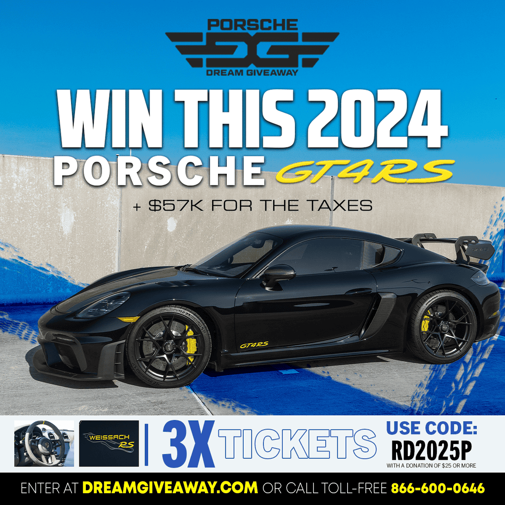 Here’s your chance to take home one of the most exciting Porsches ever built — the 2024 Porsche 718 Cayman GT4 RS. Enter the Porsche Dream Giveaway and you could win this high-performance race car while supporting a great cause.