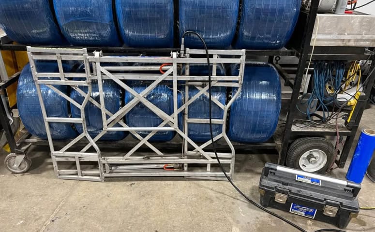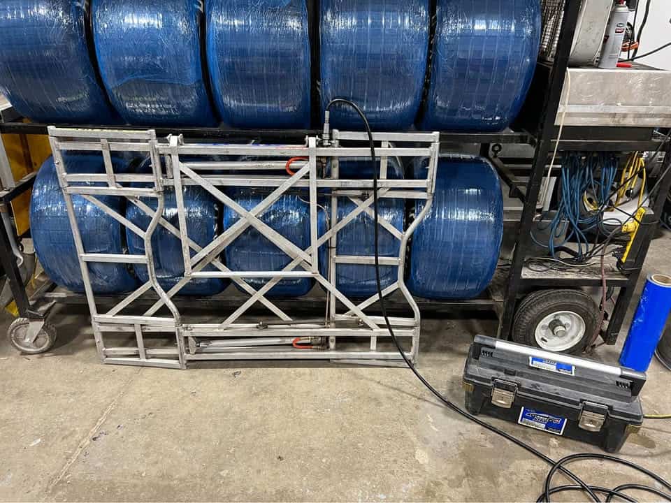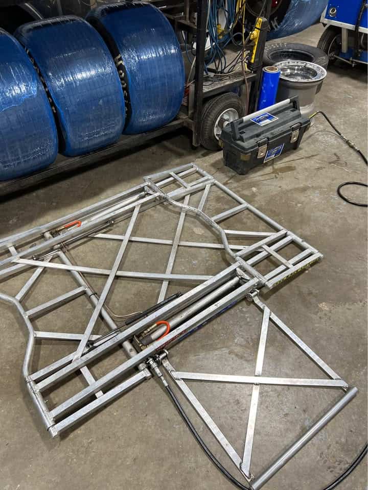 RaceLift lightweight aluminum pit lift. Comes with battery and hose etc.
