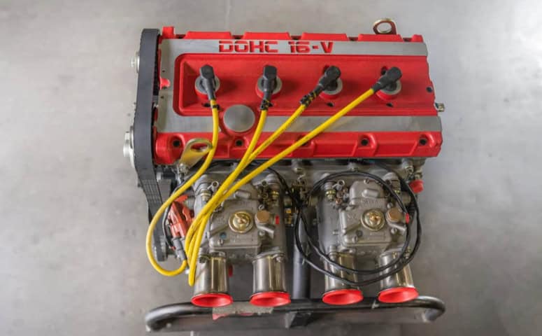 1. for sale Cosworth inline-four is a 2.0-liter YB-series engine Features include a 16-valve cylinder head topped by a red valve cover, dual 48mm Weber carburetors, and twin overhead camshafts. Interested parties please reach out for more details.