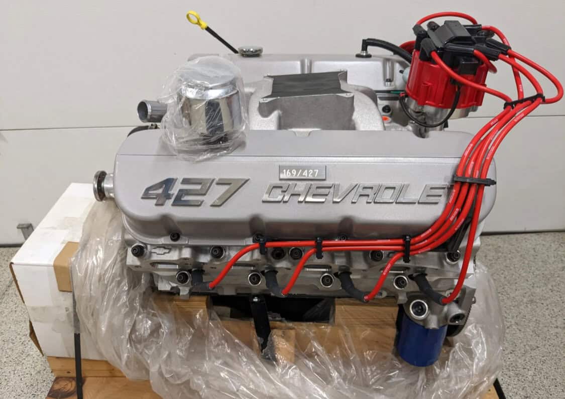 This 427ci V8 was purchased new in December 2008 at Shottenkirk Chevrolet of Fort Madison, Iowa, and has remained unused since then. The engine is based on the late-1960s all-aluminum ZL1 block with which it shares a forged rotating assembly, oval-port aluminum cylinder heads, and a matching oval-port aluminum intake manifold. Kindly reach out for more information on the engine if interested.