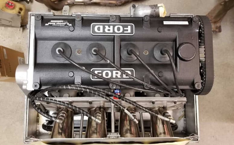 This Ford-Cosworth BDG 2.0-liter inline-four was rebuilt last year after being removed from my 1971 Chevron B19 race car. First assembled in 2016 by S. Jennings Racing, this engine was again rebuilt in 2017, including new pistons, springs, valves, and more. It has not yet been installed in a car, though an engine dynamometer result showed 295 horsepower and 188 lb-ft of torque. This injected Ford-Cosworth BDG engine is mounted on an engine stand and in a metal shipping crate.